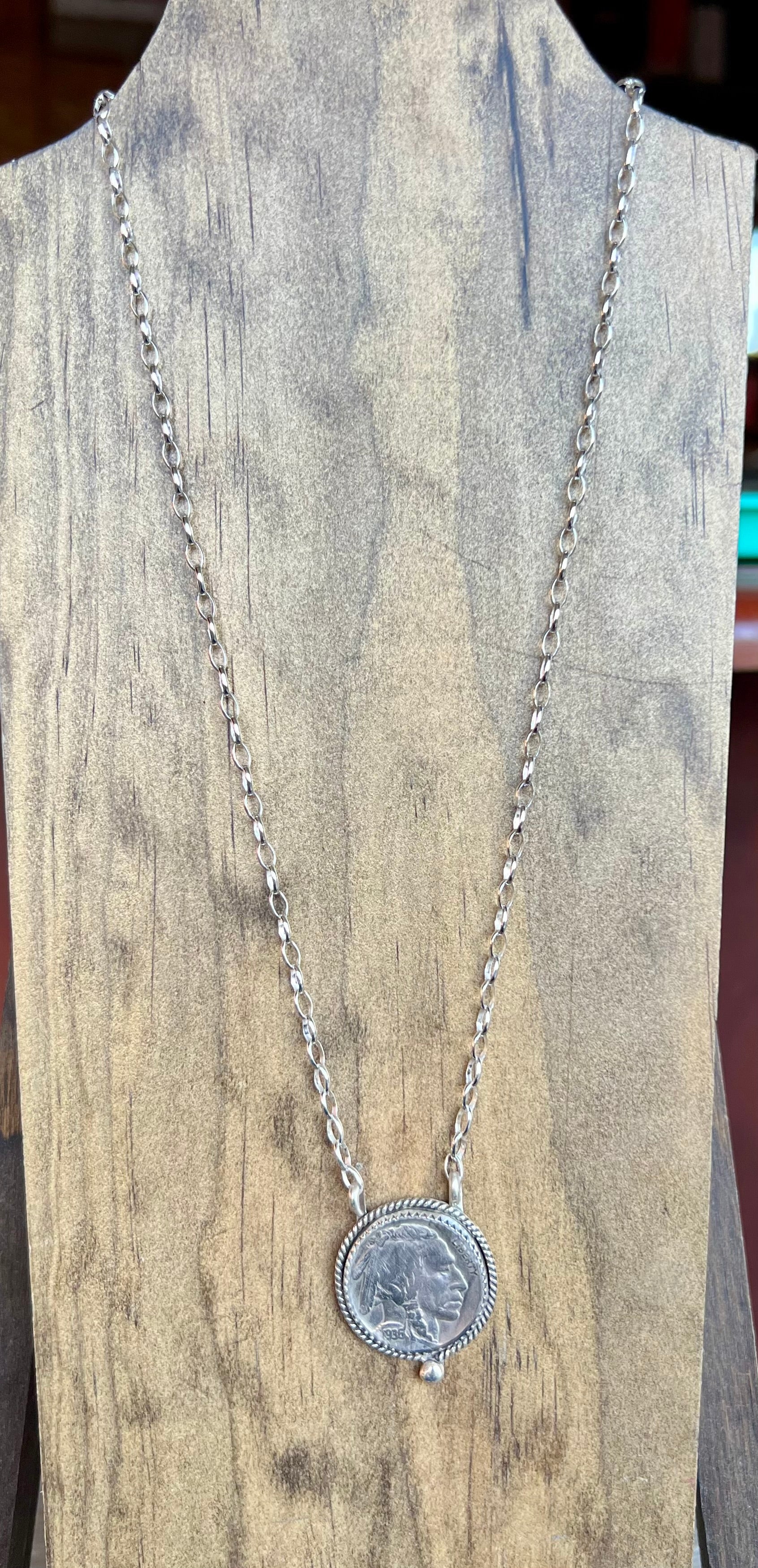 Indian Head Nickel Necklace set in sterling silver on an 18 inch sterling silver chain