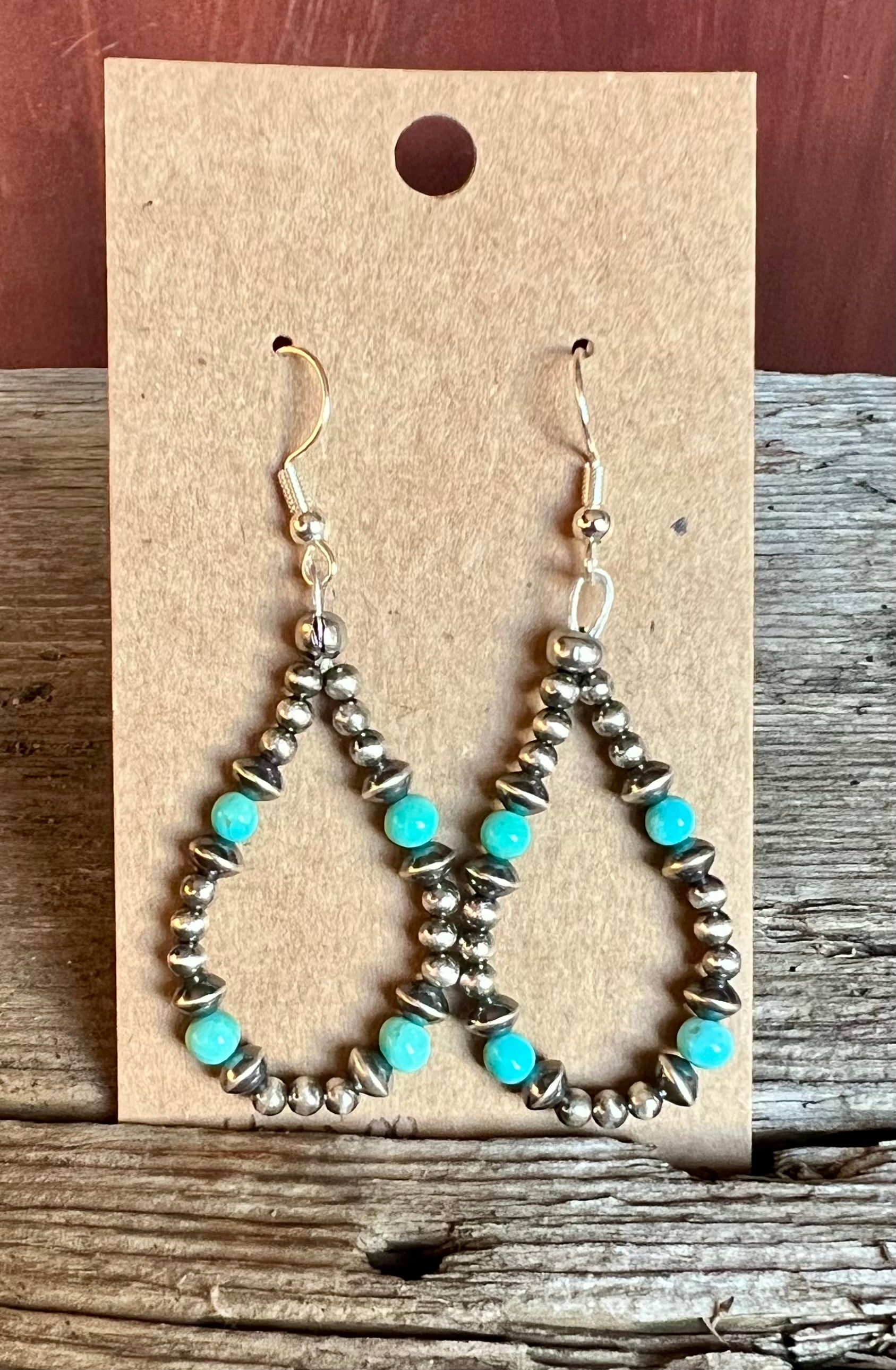 Kingman Turquoise with 3mm Sterling Silver Pearls & Saucers