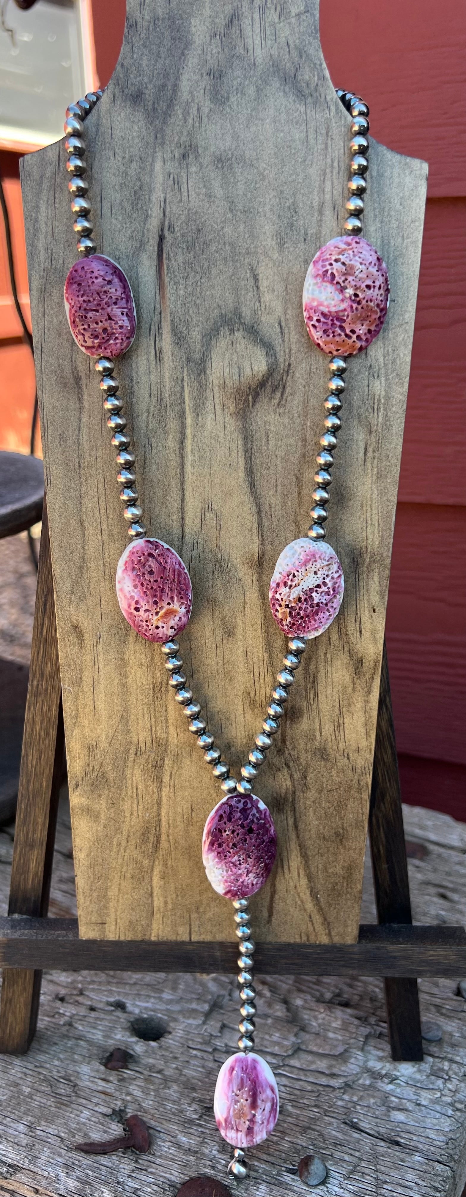 Purple Spiny Oyster with 4&5mm Sterling Silver Pearls