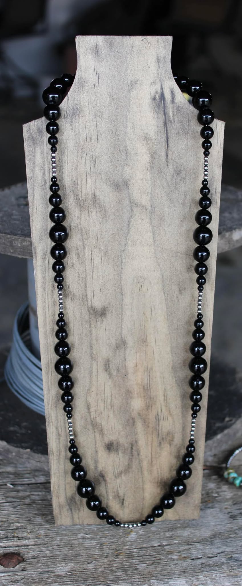 3mm Sterling Silver Pearls w/ 4-12mm Black Onyx Beads