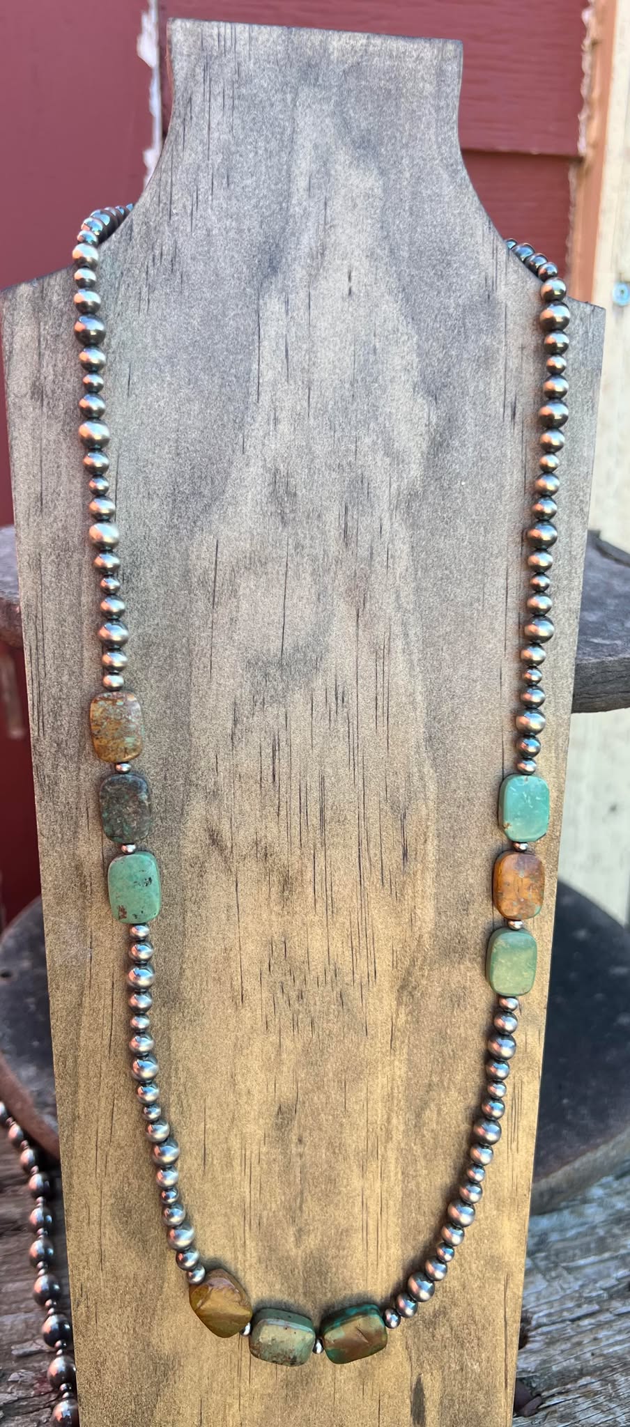 4-6mm Sterling Silver Pearls w/ Hubei Turquoise Rectangle Beads