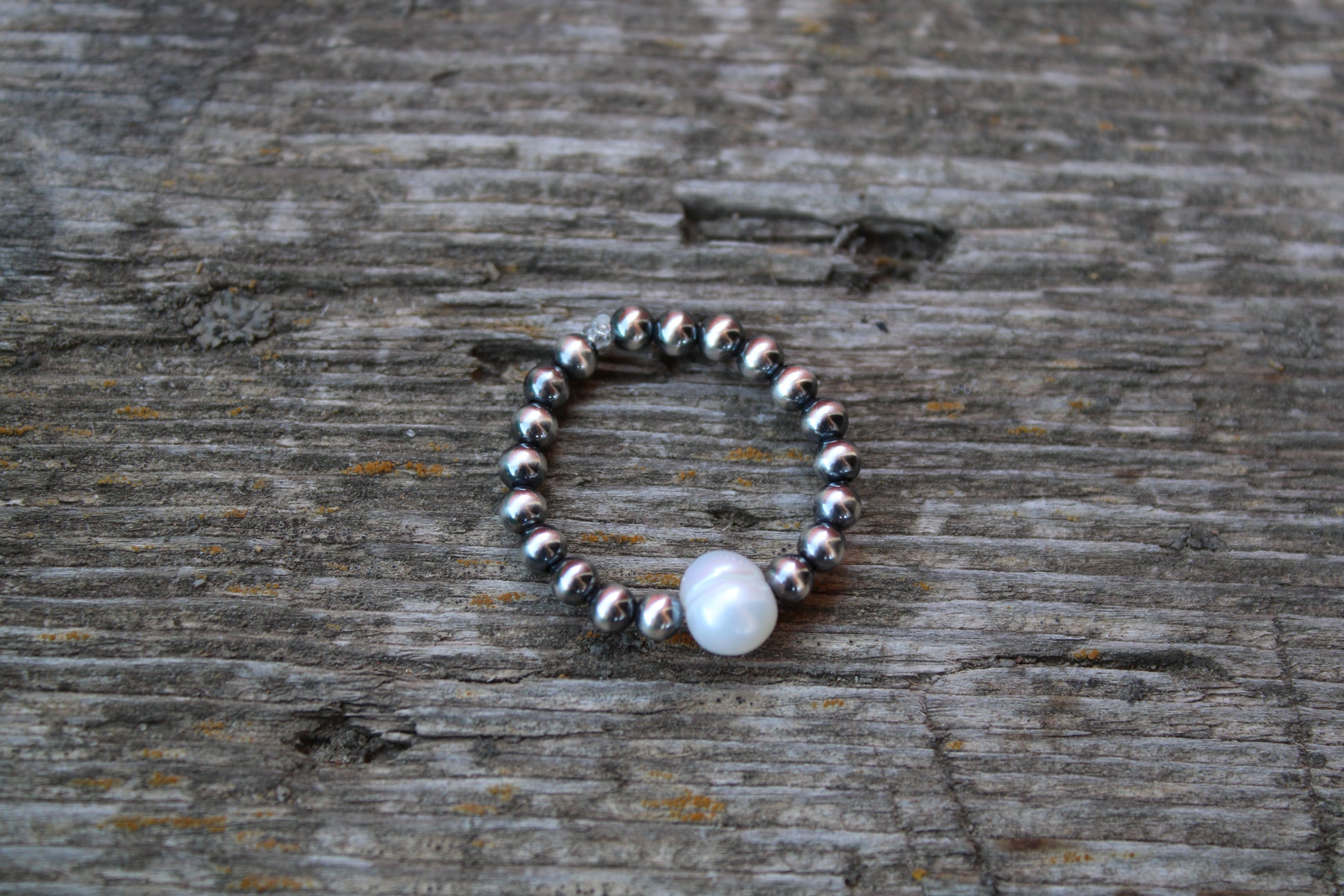 Fresh Water Pearl & 3mm sterling silver pearl stretch ring