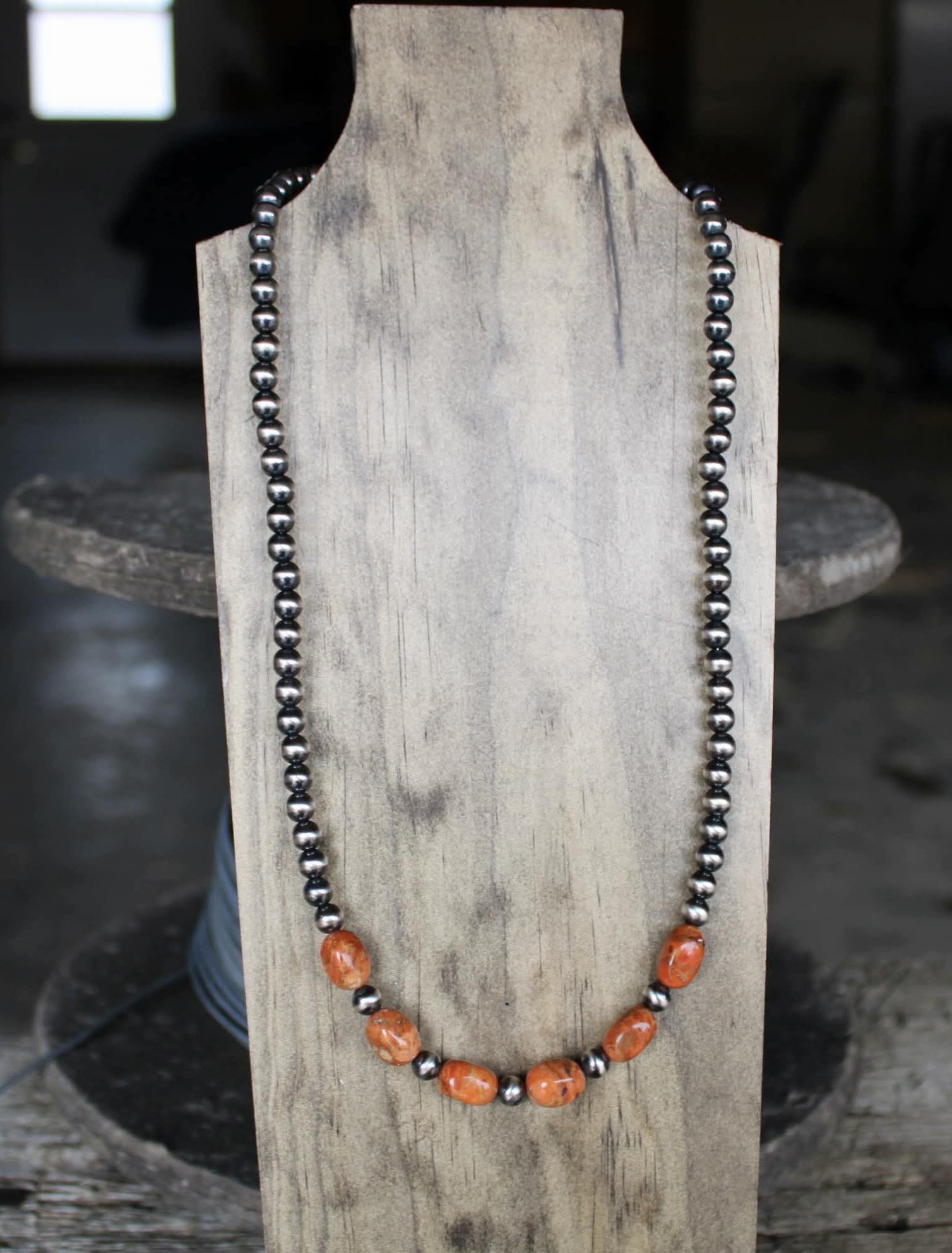 6mm Sterling Silver Pearls w/ Apple Coral Beads