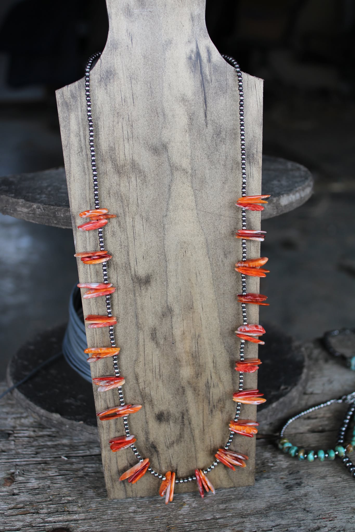 3mm Sterling Silver Pearls w/ Orange Spiny Oyster Chip Beads