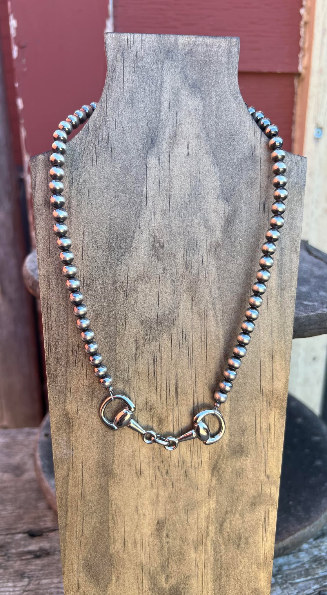3 & 6mm Sterling Silver Peals with Snaffle Bit Pendant (Pendant is not sterling silver)