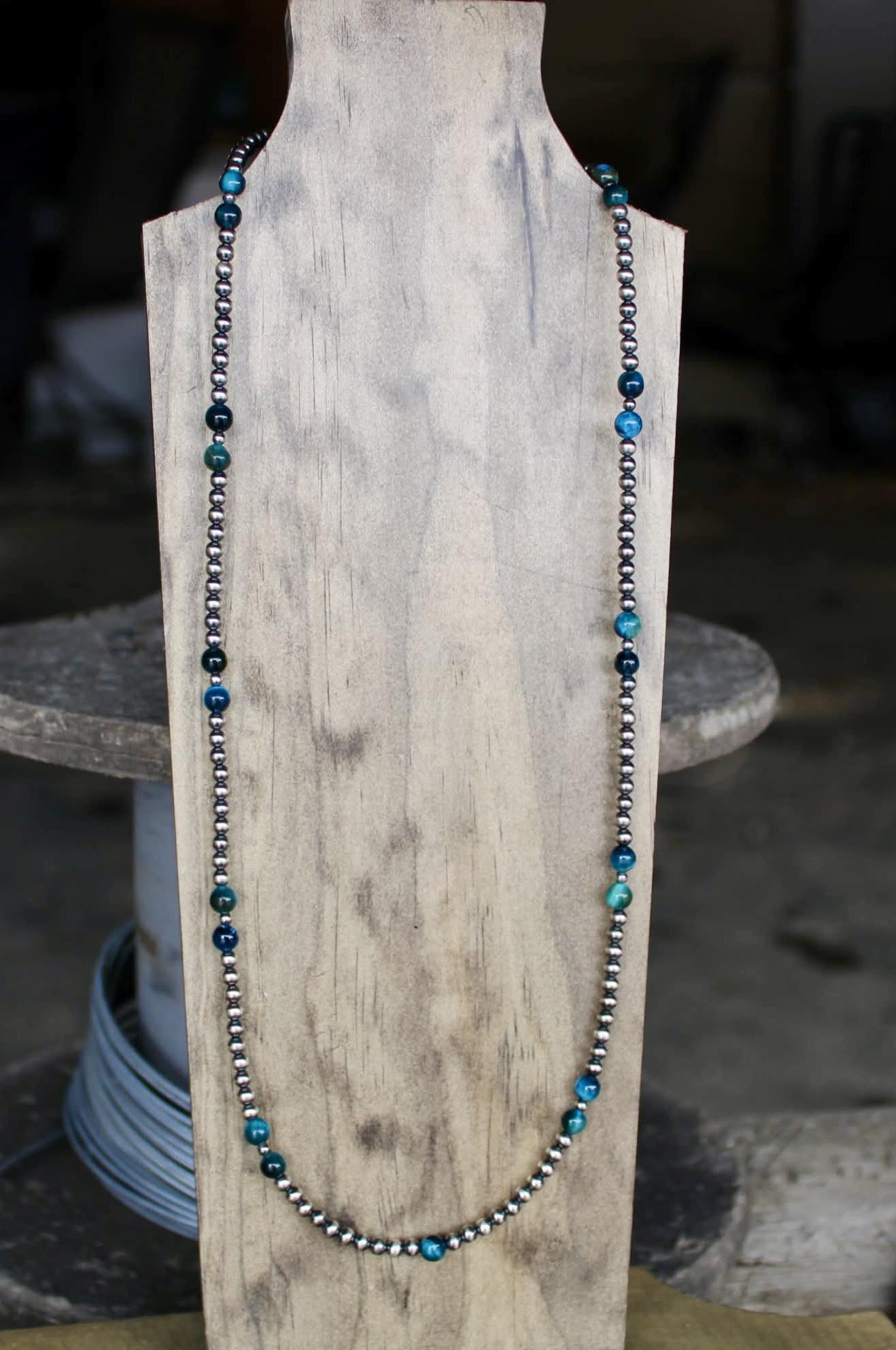 3&4mm sterling silver pearls w/ blue tiger eye beads