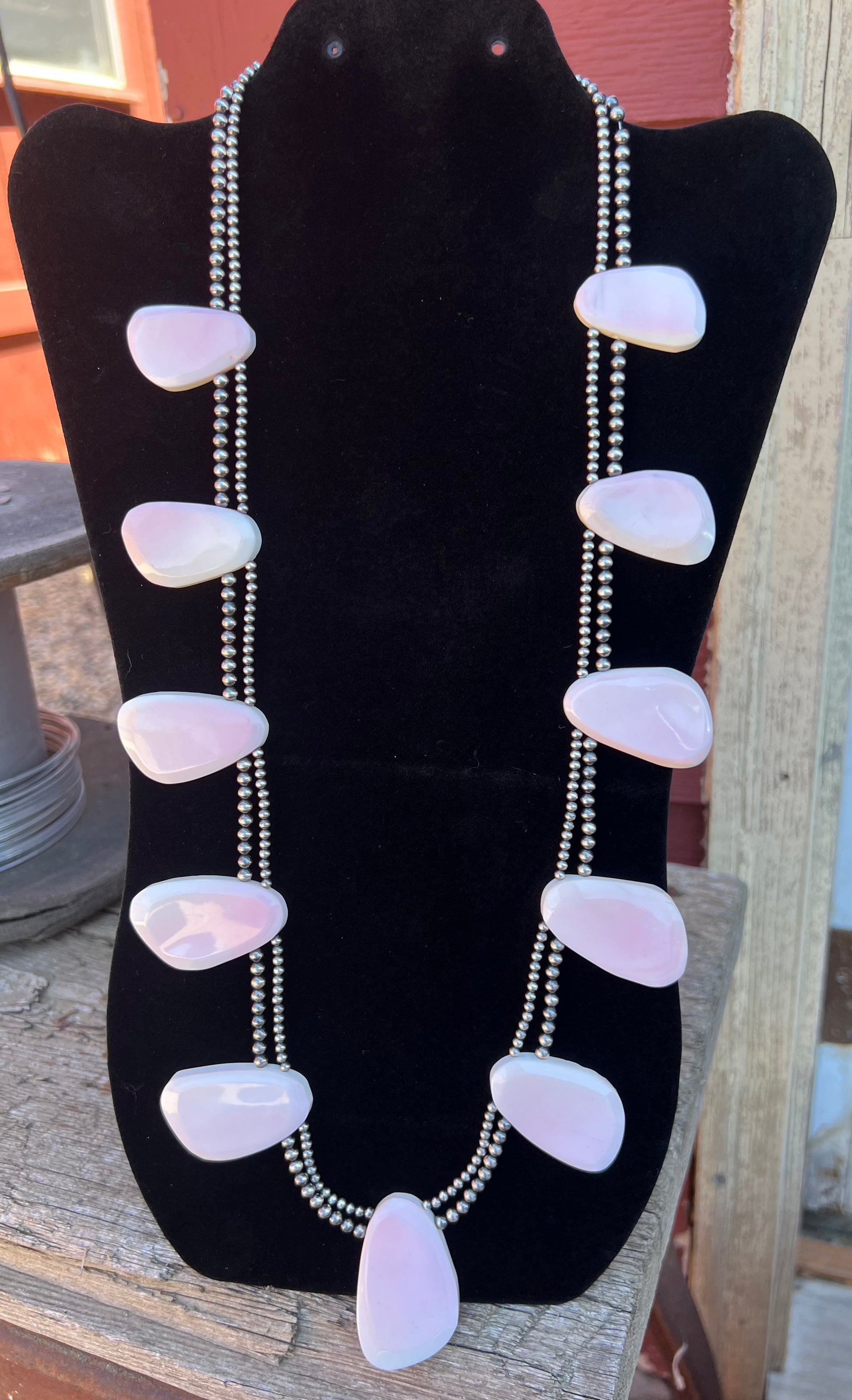 Large Pink Conch Statement necklace with 3&4mm Sterling Silver Pearls